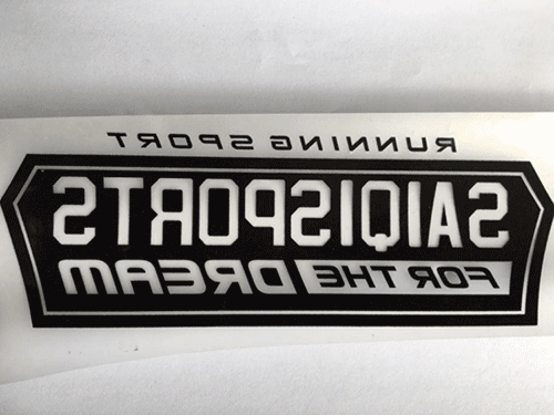 1. 繪製(zhì)“SAIQISPORTS”品牌標誌燙畫激光雕刻圖 2. 選(xuǎn)用CO2激光雕刻機定位並調試,設(shè)定(dìng)好(hǎo)打標參數。