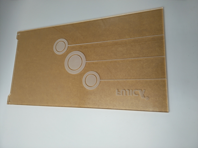 工藝要求:參照客戶給的圖(tú)紙,亞克力反麵(miàn)鐳射圓、橫線條、字母,鐳射深度效果為0.33MM,需(xū)撕紙,鐳射後(hòu)再貼回去。