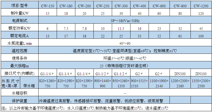 CW-35PT在水溫25℃,環境溫度30℃時的製冷量為3.8KW,